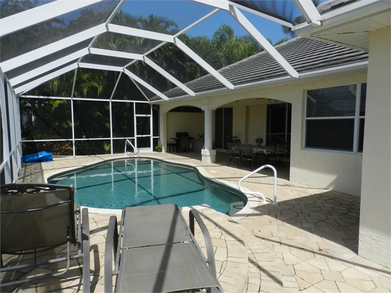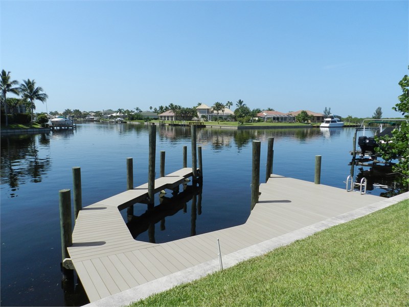 Great view down the wide canal. The large covered patio has table and chairs and a gas grill. The pool has an electric pool heater for cool weather enjoyment. You can sit on the boat dock and enjoy the view over the waterway and see boats going by. This home has internet, access in the private office. cable TV in living room, master bedroom and guest bedroom.