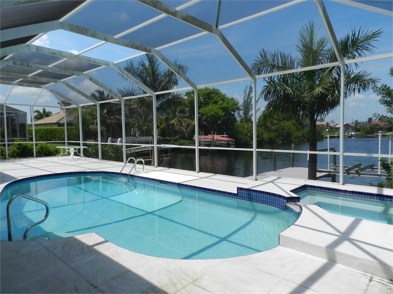 Beautiful large Villa in Southwest Cape Coral, pool faces west. 3 bedrooms/ 2 bath. Over 2000 sf, it offers warm, sunny afternoons and gorgeous sunsets. High ceilings, tiled floors in all rooms.